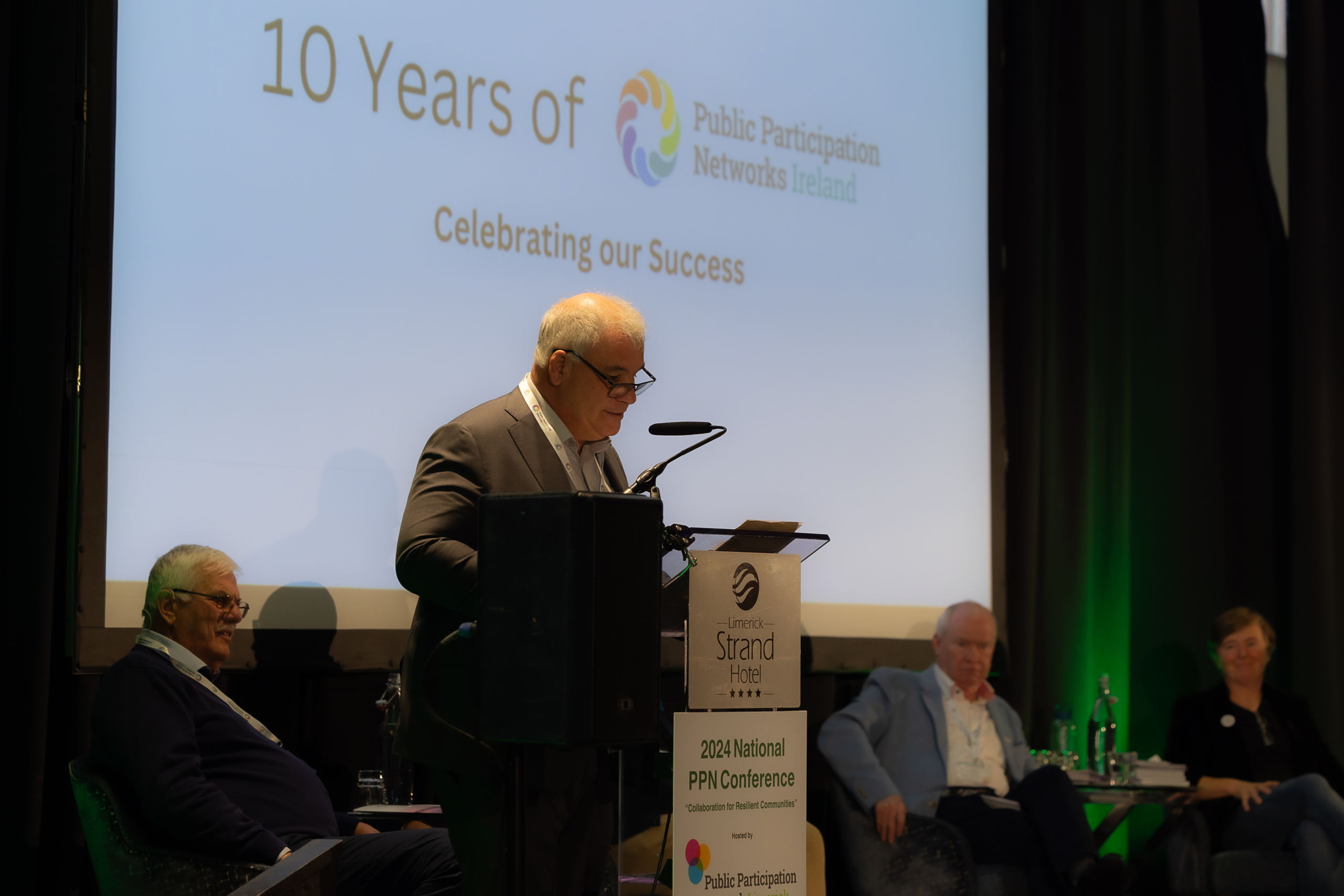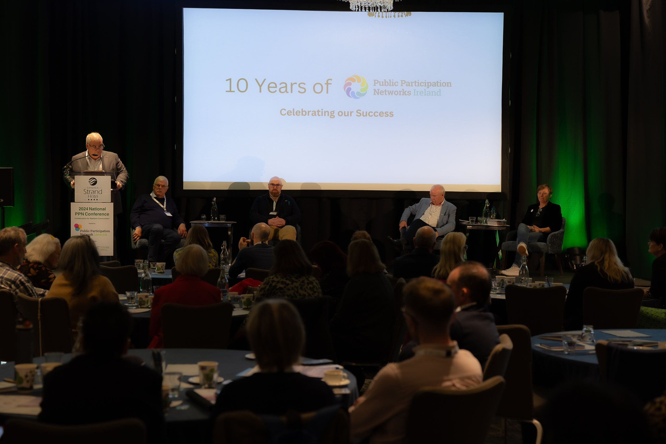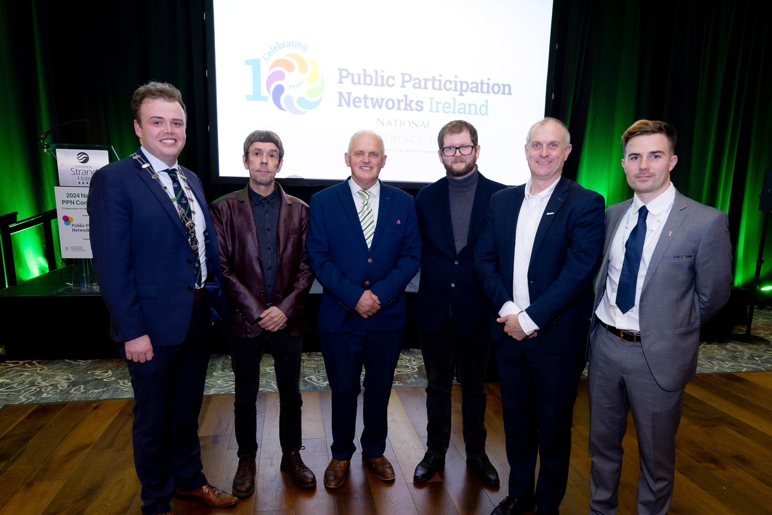 17-10-2024 IMAGE REPRO FREE Public Participation Networks Ireland, National Conference 2024, Collaboration for Resilient Communities, held in the Strand Hotel Limerick. Attended by Dan McSweeney - Príomh Chomhairleoir, Limerick City and County Council. PPN Secreteriat Mark Ryan, Jack O'Connor, Patrick Fitzgerald, Sean Kelly and Fionan Coughlan. Picture: Keith Wiseman
