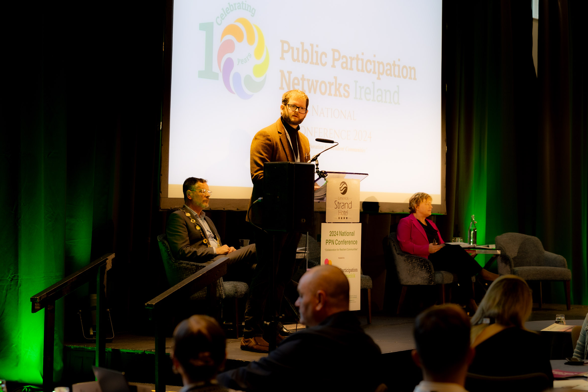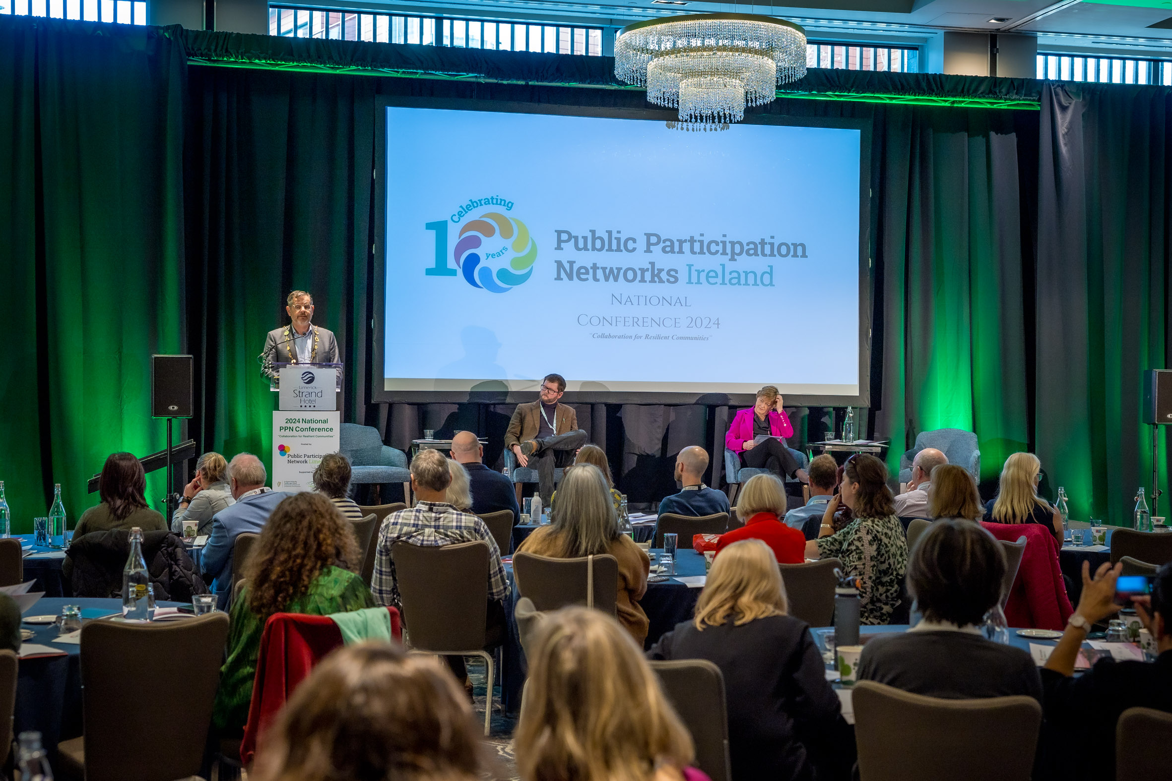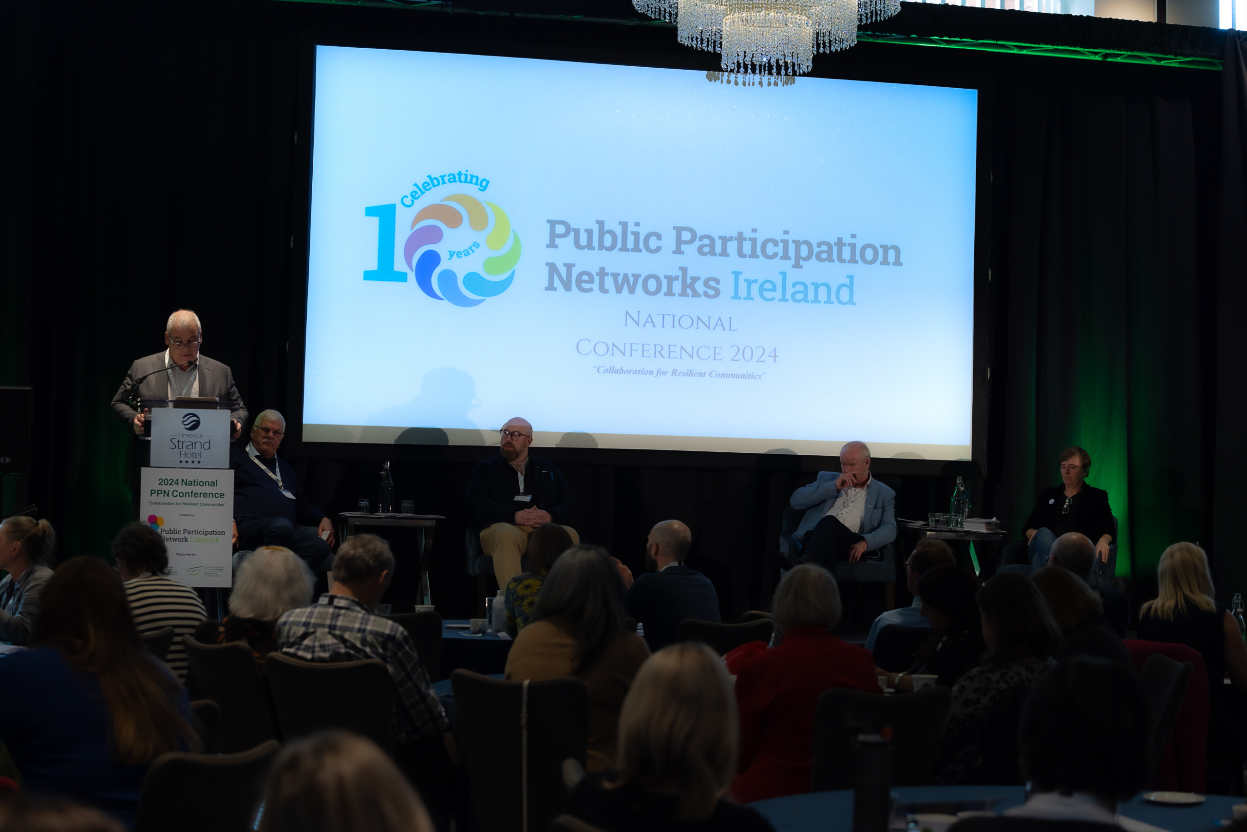 17-10-2024 IMAGE REPRO FREE Public Participation Networks Ireland, National Conference 2024, Collaboration for Resilient Communities, held in the Strand Hotel Limerick. Attended by Dan McSweeney - Príomh Chomhairleoir, Limerick City and County Council. PPN Secreteriat Mark Ryan, Jack O'Connor, Patrick Fitzgerald, Sean Kelly and Fionan Coughlan. Picture: Keith Wiseman